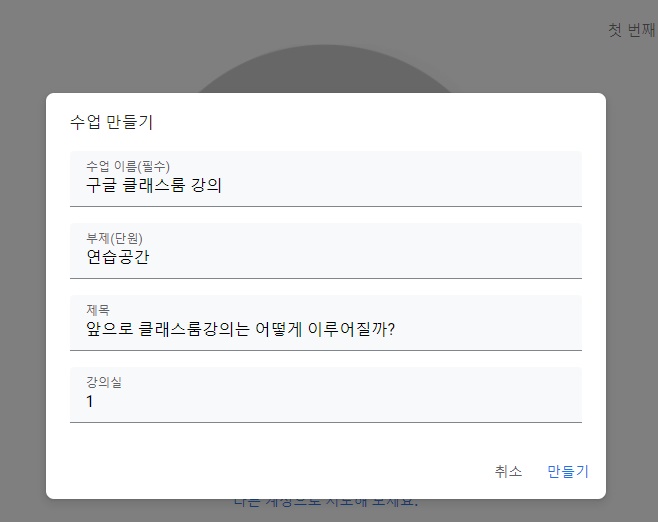 바로 우측 상단의 플러스를 눌러 수업을 만들 수 있다.